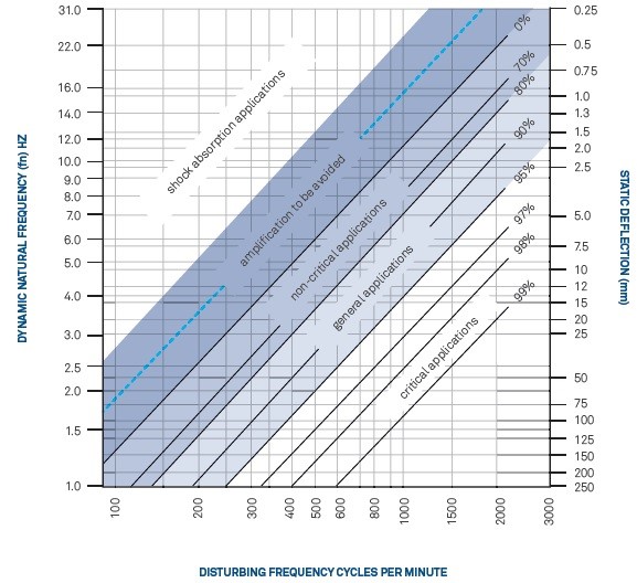 راهنمای انتخاب لرزه گیر که در ادامه آمده است، نسبت های نظری مهم بین فرکانس اغتشاش، دفلکشن استاتیکی و محل نصب را خلاصه کرده و یک راهنمایی خوب برای انتخاب صحیح لرزه گیر ارائه می دهد.